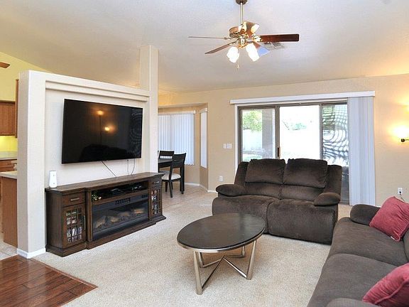This charming residence includes a spacious backyard complete with a covered patio and a grand shade tree, creating an idyllic setting for outdoor leisure. The interior's split floorplan promotes seclusion among its three bedrooms and two bathrooms. High vaulted ceilings contribute to a sense of openness, and the expansive great room transitions smoothly into a generous kitchen and dining space, perfect for hosting gatherings. Situated in the accessible east side, the home enjoys proximity to shopping and educational institutions, marrying convenience with comfort in a sought-after locale. Moreover, the sellers are providing a one-year home warranty policy to ensure additional security for buyers.