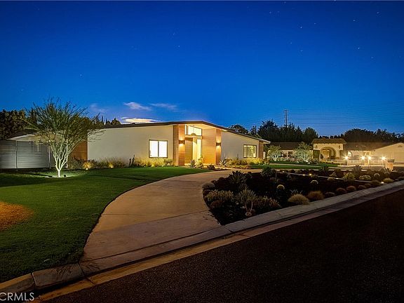 This home is an ENTERTAINER"S DREAM! One of a kind mid-century modern single-story residence, set on cul-de-sac in Villa Park. Enter through your own private circular driveway to commanding entrance that opens to breathtaking interior. Living area surrounds a large courtyard with an in-ground pool. Pool remodel just completed from top to bottom. Total privacy and seclusion here! Full walls of windows surround the courtyard on three sides. Light flows freely through the residence. Oversized living room and huge formal dining room. HUGE remodeled kitchen with new quartz countertops, new white shaker cabinets, and new Kitchen Aid appliances. Plenty of room to entertain dozens of guests. Large Master suite with walk in closet. All secondary bedrooms are light bright and airy and good size for a growing family. The huge flat 21000 Sq Ft lot offers room for sport court, guest house, RV parking and much more. Large three car garage and driveway for all the toys and vehicles. This home has been completely remodeled! (All bathrooms have been redone, new laminate flooring, replaced exterior windows, all new doors, PEX plumbing throughout, new electrical, LED lighting, new front yard landscaping and backyard hardscape, outdoor kitchen, brand new HVAC, custom closets in all bedrooms, Murphy bed in smaller bedroom/office, custom wall unit in primary bedroom, surround sound in family room, new wiring for high-speed internet, streaming, smart thermostats, lighting outlets and landscape timers!