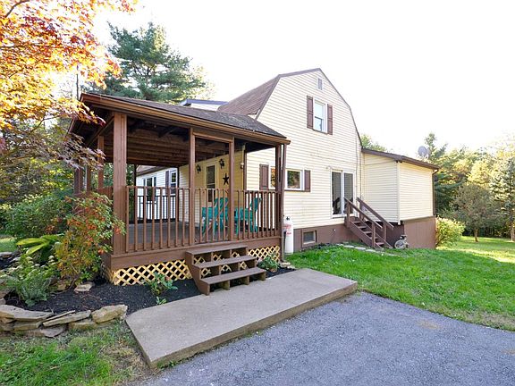 A half circle driveway gives you easy access to this home that is in the final stages of remodeling. A new kitchen, flooring, fixtures, and added second bathroom make this home move in ready. There is a toasty warm woodstove in the living room to keep out the chill on cold winter days, and a covered deck to sit and enjoy the summer days. Enjoy the large yard with the mature trees and walk the moss covered trails down to the stream that runs through your 7 acres. Just minutes to Raystown Lake, this is the perfect primary or get away home!