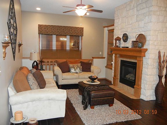 Soaring 10ft ceilings and 2 way gas fireplace from kitchen to living room, formal dining room as well as breakfast nook in the kitchen are just a few of the amenities of this 4 bedroom 3 bath home. Granite island in the kitchen is home to the sink prep area. There is a walk-in pantry. This kitchen is designed to be the heart of the home-stainless steel appliances-dishwasher, over the range microwave and smooth-top range all about 3 years old. Close by is the main floor laundry with 42in cabinets as well as a hanging rod for ease doing the laundry. Seller added these cabinets to create storage needed in laundry room. The front door is a recent addition, which has all anti-kick safety kick feature. Entertaining is a dream in this home with the kitchen/hearth room, formal dining area and main living area all connected and free flowing. Stairs to the basement and exit to the deck and backyard are just off the kitchen. The next best place to hang out is the family room in the basement with beautiful, cozy gas fireplace, built-in alder wood entertainment center. The wet bar area just completes the experience. There is also a bedroom and a bath and play space for the young ones under the stairwell. Plus over 200 sq ft of storage. The master en-suite has a vaulted ceiling, adjoining bath with dual sinks, corner garden tub and walk-in closet. For your living comfort, the seller installed a whole house humidifier. And this is not all, to keep the lawn beautiful the seller had a well drilled for irrigation purposes to complement the sprinkler system and a wrought iron fence for children and pets. This is truly a dream home. Garden statuary does not remain. Seller will take bedroom window treatments in all 3 upstairs bedrooms and main dining area and rods also. Seller will take shower rod in hall bath main level.