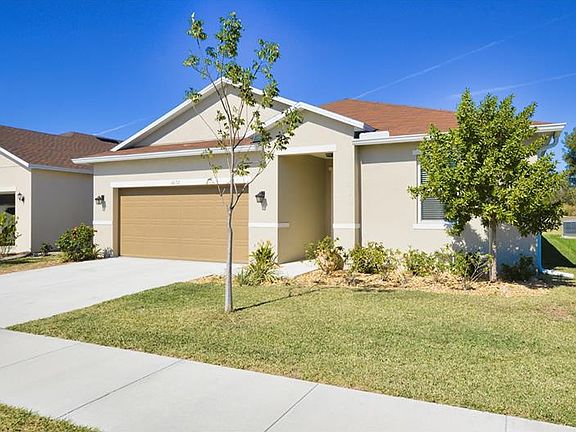 CREEKSIDE--You don't want to miss this one! BEAUTIFUL 3 bedroom 2 bath 2 car garage home with a den that could be a 4th bedroom. SPACIOUS OPEN-FLOOR PLAN offering plenty of room for the whole family. ENERGY STAR CERTIFIED HOME... TILE throughout the main areas and carpet in the bedrooms. The large, GOURMET KITCHEN features ABUNDANT COUNTER and CABINET SPACE, a CLOSET PANTRY, DECORATIVE STONE BACKSPLASH, S.S. APPLIANCES, and more. The Master suite features a walk-in closet, dual sinks, and a large walk in shower. If you like spending time outdoors, you can relax on the lanai with a private wooded view with palm trees. Or enjoy a stroll on the sidewalks that wrap around the entire community. You'll love the convenience to I-75, restaurants, grocery stores, Wal-Mart, etc....all of which are nearby.