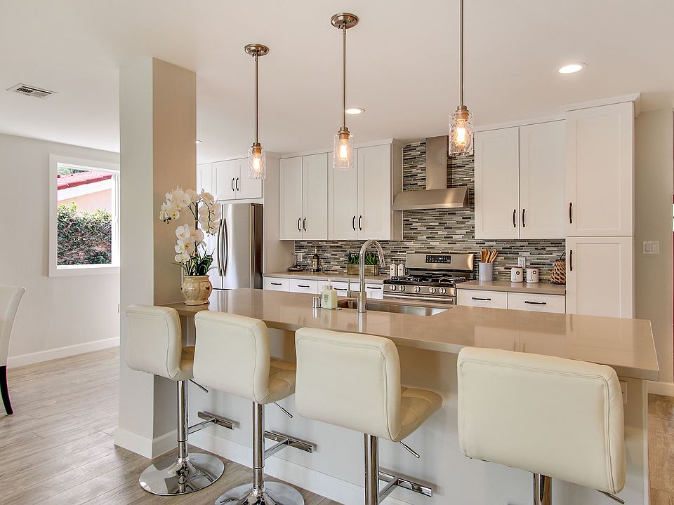 3 Bedrooms plus Den. Prime Location. Topeka ES, Nobel MS, Granada Hills HS. Exquisitely remodeled and redesigned house. Open floor plan. Beautiful kitchen, dining and family area that is perfect for entertaining. Solid oak white shaker cabinets and custom quartz counters in kitchen and bathrooms. Custom-stained mahogany entry door, custom-built fireplace mantel, handmade interior doors. New roof, copper plumbing, and new water heater. New main sewer line to the street. New paint and flooring, new 200 amps electrical panel, recessed LED lighting. Finished garage with new epoxy floors. New pergola patio cover and refinished concrete in the backyard create a wonderful space for outdoor dining. New landscaping and automatic sprinklers in the front and back yards. Newer heating/cooling system and new ducting. Master suite with gorgeous bathroom, new windows and sliding glass doors, new hallway skylight. Quality workmanship and materials throughout the house.