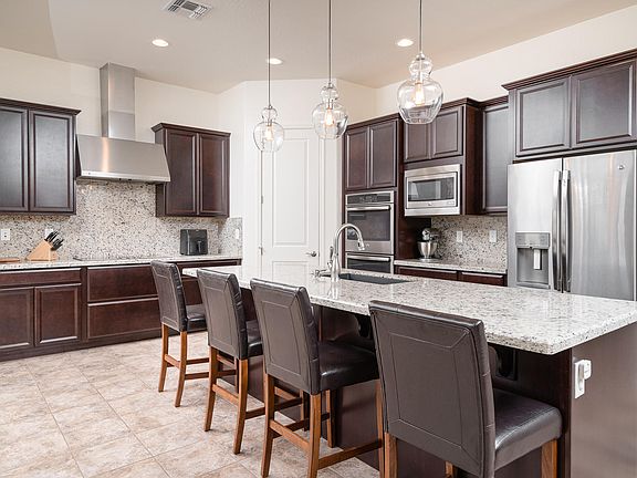 - Kitchen Features: Kitchen Island, Dishwasher, Disposal, Granite Countertops, Wall Oven(s), Built-in Microwave, Gas Stub for Range, Cook Top Elec, Walk-in Pantry, Multiple Ovens