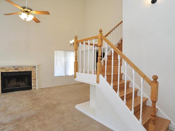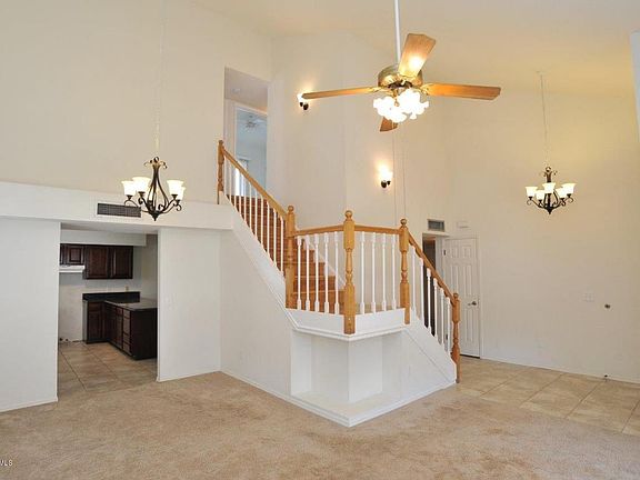 Updated 4BR 3BA.Just painted in & out.Stunning granite counters in kitchen.Lots of counterspace.Refinished kitchen cabinets have a rich, beautiful look.Gorgeous 18'' tile downstairs.New oil-rubbed bronze fans downstairs. Living rm has stacked stone fireplace & a bay window. Master suite is downstairs and has a walk-in closet, and sliding glass door to rear of home.New matching pedestal sinks in master bath.Shower has tiles all the way to the ceiling. 1/2 bath downstairs makes it convenient for guests.3 bedrms upstairs,each w/oak laminate floors and ceiling fans. Middle upstairs bedrm has sliding glass doors to approx 12x25 covered deck.Garage has workbench & storage cabinets. Fenced yard wraps around all 3 sides of home.Approx 12X25 covered patio off family rm.Owner licensed AZ Realtor.
