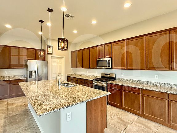 Available Now! 2,705 SQ FT! 4 bedroom, 3 bath home in Mesa's desirable Eastmark community. Desirable single-story floor plan. Freshly painted interior! Charming kitchen with included appliances: Dishwasher, Dryer, Microwave, Oven, Refrigerator, Washer, and Water RO System. Spacious living areas, perfect for entertaining! Carpet and tile flooring in all the right places. Primary suite features a walk-in closet. This home offers 4 nicely sized bedrooms plus a flexible bonus space, perfect for a home office or den. Enjoy a backyard with a fenced yard, grassy area, and covered patio. 2-car garage! Great Mesa location with nearby schools, parks, dining, and entertainment. Community amenities include a pool, playgrounds, and biking/walking trails.