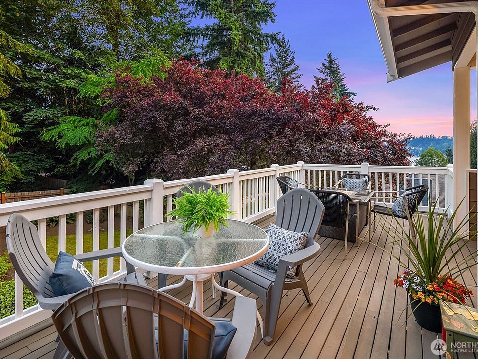 Fully finished daylight basementPeekaboo lake wa viewsTwo decksVaulted ceilingsJapanese-inspired gardens