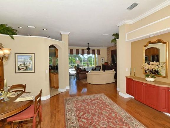 AWC - Taking Backup Offers Don't miss the opportunity to own this gorgeous custom built Todd Johnston home overlooking the 14th fairway 100 yard marker in the highly desirable golf community of River Club. This maintenance free 2 bedroom plus den, 2 bath open floor plan home has been lovingly maintained by the original owners and is loaded with high end finishes and is in move in ready condition. The kitchen features stainless steel appliances, granite counter tops, custom cabinets, tile flooring and a separate breakfast nook. The great room features crown moulding, custom cabinets surrounded by a beautiful Ledgestone, electric fireplace and opens up through pocket sliders to the lanai with offers a panoramic view of the golf course along with a gourmet summer kitchen, solar heated pool and spa. The dining room is separated from the great room and also features crown moulding. The large master suite features an aquarium window overlooking the pool, a separate seating area and en suite bath with Roman shower, double sinks, granite counter tops, tile floor and custom closets. That's not all...the six feet added to the depth of the garage and large cabinets are perfect for storage! River Club is a beautiful deed restricted community with large spacious homesites, NO CDD FEES, low HOA fees and conveniently located across from all the amenities Lakewood Ranch has to offer.