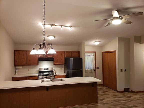 This side by side Duplex has 3 bedrooms and one bathroom. The main floor, approx 920 sq feet, has fresh paint and new flooring throughout. It features 2 bedrooms, a full bathroom with a tub/shower and an open-concept living room and kitchen with cathedral ceilings. The kitchen includes a double sink, dishwasher, newer stove and refrigerator, lots of cabinets and a large countertop. There is also space for a eating area. The living room area is carpeted with large windows. The full walk out basement has one of the bedrooms, which would also make a great office and the rest is unfinished and could be used as a bonus room and storage. There are washer and dryer hook-ups in the approx 920 sq foot basement. There is a washer and dryer there now, but only as they operate. The home has central air and heat. The rental includes a attached one stall garage with extra parking spaces. Water, sewage, lawn care and driveway snow removal is included. The landlord's live right next door. The property sits on 2.5 acres. The rental will be available in late January. Maximum 3 occupants. No smoking owner pays for Water, sewage and driveway snow removal. No smoking. 1 stall attached garage and extra off street parking. 6 month lease then month to month. Maximum 3 occupants