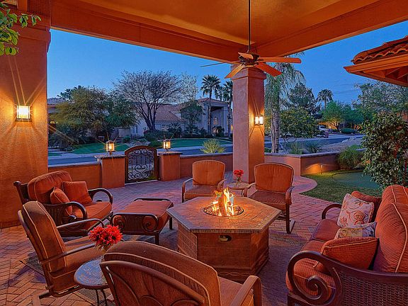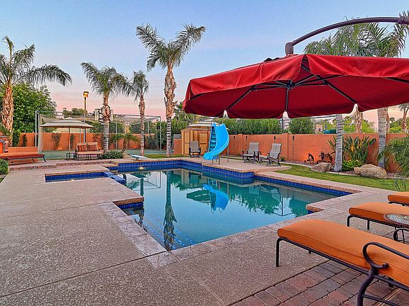 WOW! Totally updated and meticulously maintained on nearly a 1/2 acre lot w/ VIEWS! 5 BR PLUS a den/exercise room. Beautiful Pella door from LR to charming gated courtyard that includes special lighting, fan & putting green! Spacious master suite with sitting room, hard wood flooring, new custom built ins in closet! Gorgeous yard offers endless fun with pebble tech salt water pool, slide, sport court, batting cage, in ground trampoline , cozy fireplace and built in outdoor kitchen area! Ideal Cactus Corridor location near 101, dining , shopping, and excelling Scottsdale schools !This homes offers excess storage with large laundry room that has space for an additional refrigerator, walk in pantry, two attic spaces, work area in garage and built in storage cabinets.Too much to list!