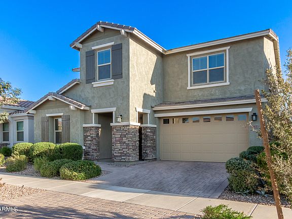 OFFERING $15K IN SELLER CONCESSIONS! Located in the highly desirable Eastmark community, this stunning 4BD and loft, 3BTH home features modern and sophisticated finishes, including quartz kitchen countertops, upgraded wood plank floor tile, custom kitchen island, oversized pantry, shaker kitchen cabinets, and great room sliding glass door to patio. The private primary ensuite is spacious and inviting, with the primary bath showcasing double quartz vanities, walk-in subway tiled shower, and large walk-in closet. The spacious loft can be transformed into a kids play paradise, workout area, or quiet office space. The 3-car tandem garage provides plenty of extra room for storage or a workshop. The inviting and fully landscaped backyard is the perfect space for entertaining friends and family! Featuring custom iron lattices, high-end engineered grass, extended patio with pavers, and a modern natural gas fire pit. This is a stunning home from top to bottom!