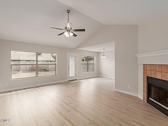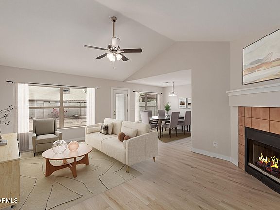 SOLAR PANELS ARE OWNED OUTRIGHT. You'll LOVE this BEAUTIFULLY UPDATED home in Camelback Greens! Providing 3 beds, 2 baths, & a 2-car garage. The fabulous interior showcases vaulted ceilings, a fresh neutral palette, tons of natural light, and water proof laminate flooring t/out. Discover a desirable semi-open layout that balances privacy with connectivity! With a fireplace as the focal point, the inviting living area offers a blend of warmth & charm. The renewed kitchen boasts SS appliances, two-tone shaker cabinetry, quartz counters, a tile backsplash, and a pantry. Each bedroom has a walk-in closet! Both main & secondary bathrooms have been updated. Tranquility awaits in the large backyard! It features an open patio, a mature tree, and so much room for your creative ideas.
