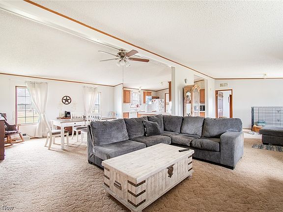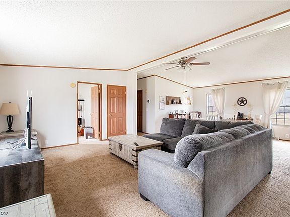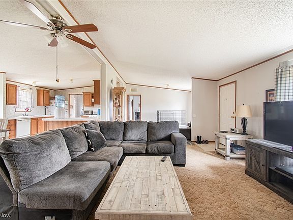 Welcome to this move in ready 3bed,2 full bath manufactured ranch style home nestled on 2 acres of a quiet country setting in Diamond Ohio. The open floor plan with vaulted ceilings and 2 bedrooms on one end of the home and large master bedroom on the other offers a flowing layout and privacy. The huge master bathroom has plenty of storage, a walk in shower and soaking tub for a spa like feel. Extra deep closets in all bedrooms provide ample storage. The kitchen has more than enough oak cabinets to make you smile and includes dishwasher,fridge and stove. A mud room/laundry room with walk out enhances the convenience of this great home. A full waterproof basement with new lighting in 2022 could easily be finished. New metal roof 2022. New heat pump 2022. New AC 2022. A cistern water treatment system was installed in 2020. The septic was serviced and emptied Jan 2024. Don't miss this rare opportunity, schedule your showing today.