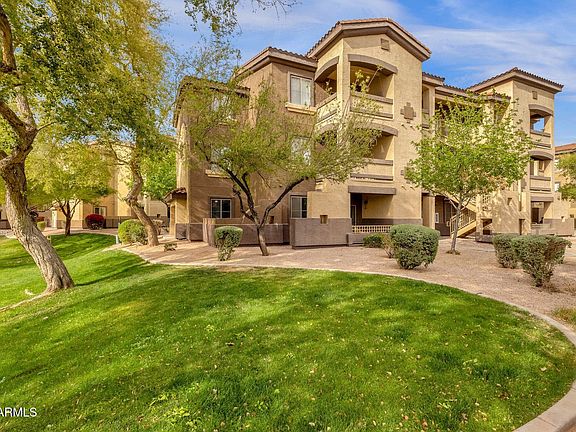 FIRST-FLOOR & CORNER UNIT! This beautifully updated 3-bedroom, 2-bath townhome in the highly sought-after Coyote Landing offers breathtaking mountain views and stunning Arizona sunsets! Located in a gated community, enjoy resort-style amenities, including two pools, a spa, clubhouse, fitness center, BBQ areas, and a sports court. Inside, this light, bright, and spacious home features updated wood plank tile flooring throughout. The open-concept eat-in kitchen boasts granite countertops, a pantry, ample counter space, and brand-new LG stainless steel appliances, including a smooth-top range and microwave. The primary suite offers a walk-in closet, dual sinks, and plenty of cabinet and vanity space. Mins to freeway access, restaurants and shopping!