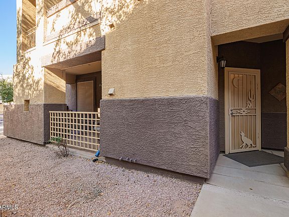 Welcome home to this charming furnished ground floor 3-bedroom condo located in the welcoming Coyote Landing Community! The delightful interior showcases a comfortable living room, tile flooring, high ceilings, & new plantation shutters throughout. Stylish wood cabinets, granite counters, built-in appliances, a pantry, & a peninsula w/breakfast bar are some of the features you will love about the eat-in kitchen. The main retreat boasts wood-look tile flooring, a walk-in closet, & a private bathroom w/dual sinks, a make-up desk, & crystal block shower. Enjoy relaxing in the cozy covered patio providing a lovely view of the community's walking paths. New HVAC! Make the most out of the wonderful amenities that Coyote Landing provides, including the swimming pool, Workout room, & playground