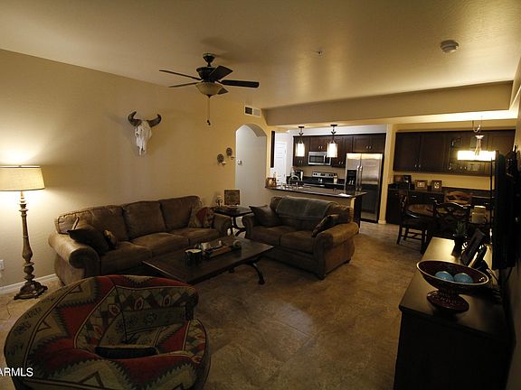 Great ground condo in East Mesa steps away from the heated pool! Warm wall tones and neutral flooring throughout. Kitchen is complete with breakfast bar, a plethora of custom cabinets, and stainless appliances. Master suite has ceiling fan with picture window and spacious walk in closet. Full bathroom with dual sink vanity and make up vanity. Patio has plenty of room for entertaining or lounging. This is a home you don't want to miss so come see it today!