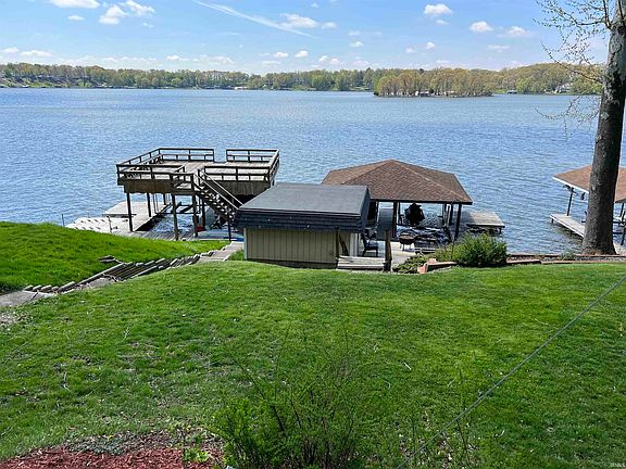 Located at the widest part of Lake Freeman, and all the waterfront improvements are in place! A steel seawall, double permanent boat lift, a swim pier, and a shed at the waterfront for your water toys. 3 bedrooms, 2 baths, which includes a generous master bedroom ensuite. Open-concept living areas with vaulted ceilings and skylights, and most furniture will remain with the property. Nestled among the trees, there is lots of decking to enjoy the view in the sun or shade. A concrete drive leads to the attached 2-car garage, and there is an extra lot across the street for additional parking. Need a Tritoon or waverunner? They are available outside of closing. A great view, a quality home, the boatlift is in place, and your lake life memories can start now! Don't miss out!