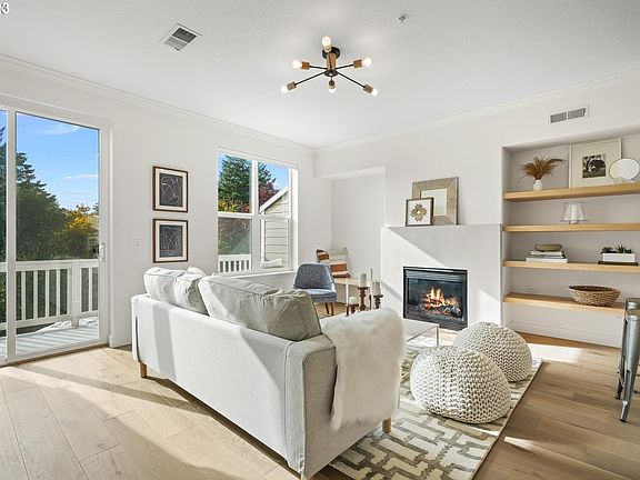 OPEN SAT, 10/21 1-3 & SUN, 10/22 1-4! Beautiful and fully renovated Forest Park townhome with fun modern features-truly a designer's dream! Featuring air conditioning, stunning engineered wood floors, and a gorgeous kitchen. The main level draws you in to a sun-drenched great room with crown molding, floating shelving, a gas fireplace, and access to a spacious deck overlooking the lush green space. The open kitchen boasts Quartz countertops and new stainless steel appliances, and is adjacent to the bright formal dining room. The upper level includes a laundry area, two full bathrooms, and two roomy bedrooms. The vaulted primary suite features a walk-in closet and a luxurious ensuite bathroom, with Quartz counters and newly tiled shower and floor. The second bedroom also features a walk-in closet and is neighbored by the hall bathroom with Quartz counters and tile flooring. The lower level offers a third bedroom, another full bathroom (don't miss the floors- SO cute!), and access to a peaceful back deck with southern exposure overlooking the greenspace. This dialed in townhome is conveniently located in Forest Heights, close to schools, parks, and shops, making it an ideal choice for modern living.