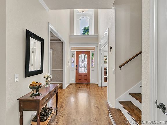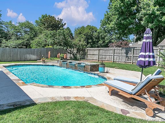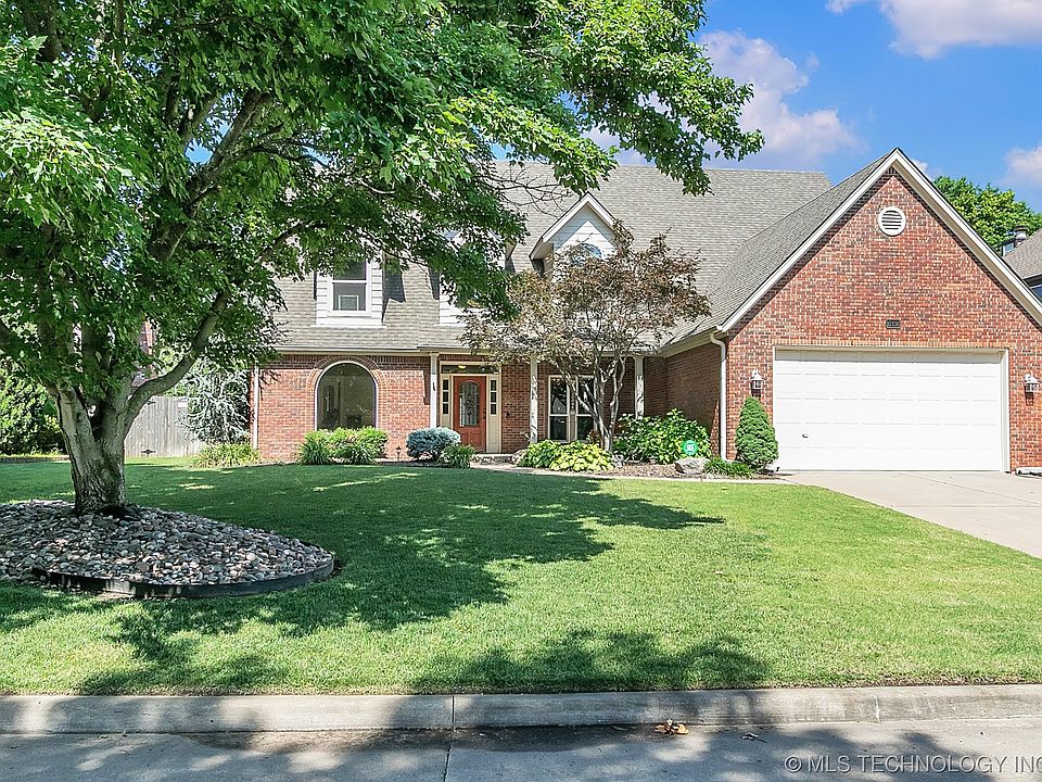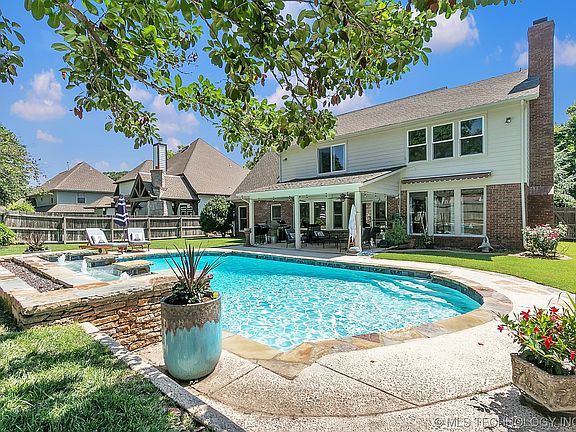 Take a refreshing dip in the saltwater pool, grill under the covered patio or simply unwind in the sun. This private retreat is ready for your enjoyment. Located in desirable Camelot Park and Jenks Southeast school system this impressive 4 bedroom home is a blend of casual elegance and functionality with 3.5 remodeled baths and a room arrangement that offers privacy and flexibility. A beautifully renovated kitchen by Kitchen Ideas combines a stylish aesthetic with custom cabinets and high end appliances and is sure to become the heart of the home with its massive island that provides space for gathering and culinary creations. Rich hardwoods are throughout the first level of this open family room with fireplace, large private office with bar access and formal dining. A main floor luxurious primary bedroom has a custom closet, upgraded bath and and 3 spacious bedrooms, an office that could be a fifthe bedroom and a large game room with a tree house feel. Great storage and upgrades throughout that will impress even the most discerning buyers.