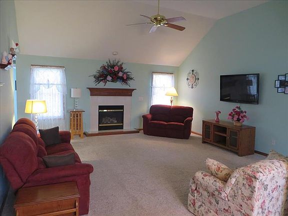 Large 3 bed ranch home w/basement in super nice neighborhood! Home sits on 1/3 acre & features a split bedroom floor plan. Spacious eat-in kitchen features an abundance of cabinetry & granite counter space as well as pantry & breakfast bar. Living room w/vaulted ceiling & cozy gas FP. Unfinished basement has a 1/2 bath. Sliders lead to patio & fenced rear yard. All appliances stay incl. W&D.