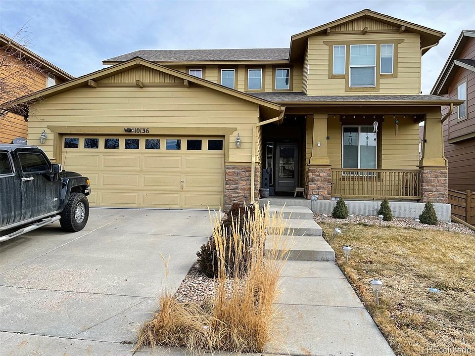 Located in Reunion, this home is about a half block from the new (under construction) Southlawn Elementary opening Fall 2022. The first thing you will notice is an open and spacious kitchen, dining space and family room accented by a fireplace perfect for entertaining and enjoyable family space. The kitchen cabinetry is the upgraded 41", breakfast bar, stainless steel appliances, upgraded tile, and hardwood flooring. Main floor bedroom and full bath are a bonus. Upstairs find a loft area, two spacious bedrooms and full bath in addition to the master bedroom with five piece bath and two walk in closets. The unfinished basement awaits your creative imagination.