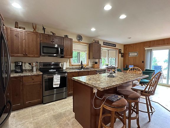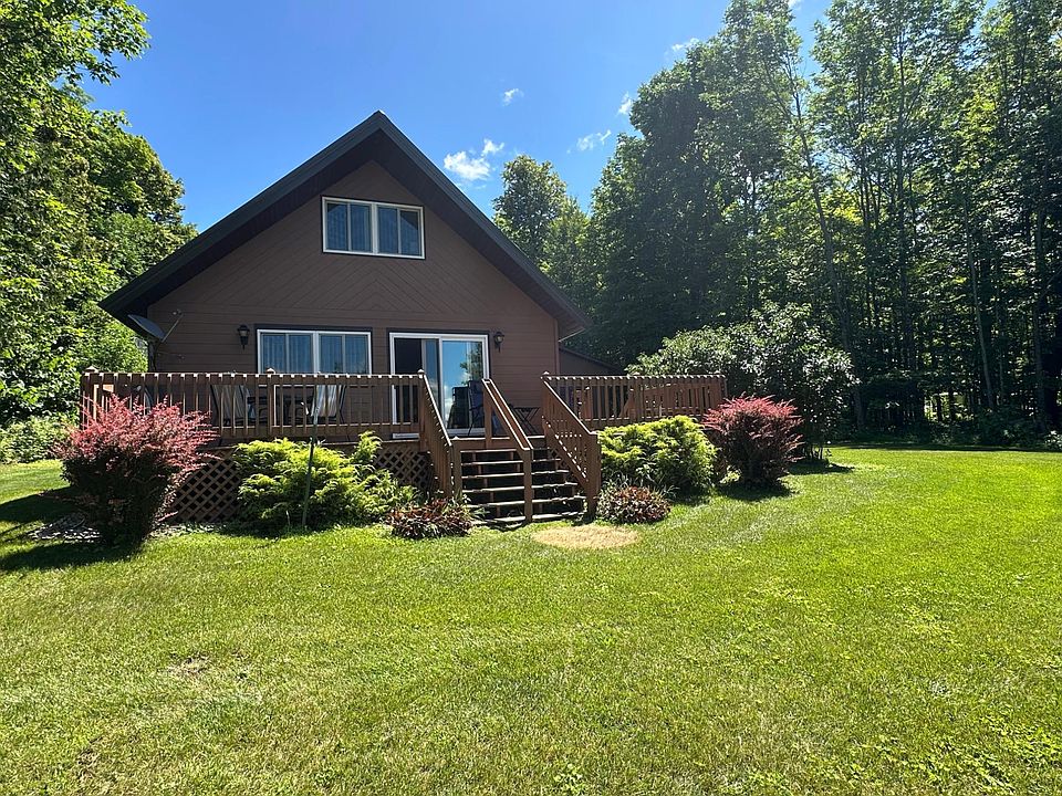 What an adorable cabin this one is! The perfect size for your lakeside getaway. Simplify life with this cozy abode with one bedroom down and another loft bedroom. Open concept. Nice newly remodeled kitchen and many other great updates make this move in ready. Hardwood maple flooring throughout. Kitchen and bath have a high grade linoleum. Beautiful lake facing sun deck to enjoy the Western sunsets and water views. Another great outside space on the east side of the house offering a lovely patio space for your enjoyment. A 28 x 32 garage for vehicles or toys, includes a workshop and plumbed for a bathroom. New 1000 gallon concrete septic tank. New windows and roof is only 5 years old. Come take a look, it's ready and waiting for you to enjoy!