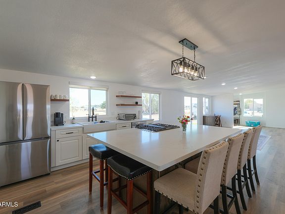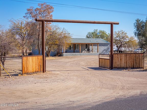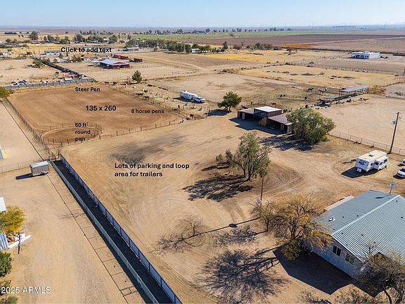 Irrigation lines run to all the Pine and Willow trees but not the Mesquite trees. Hay shed was built to hold 4 lifts of hay, there are 2 8x20 sea cans one for tack with built in bridle racks, another for a shop area, and two large areas on either side of the hay shed for tractor parking or other uses. The home has 1.5 in foam and stucco, left unpainted for buyer to choose their own color and DYI.