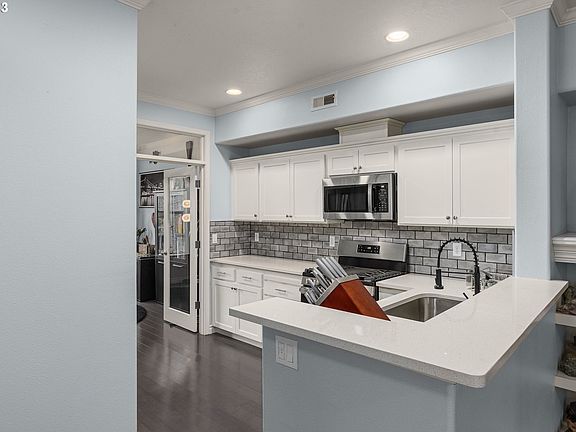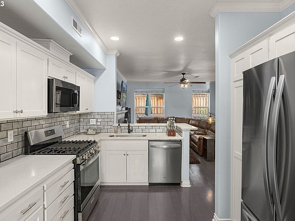 Remodeled end unit with 3bd+Den/3bth floor plan and the perfect yard.New quartz counters, appliances & backsplash in kitchen.New toilets, sinks & mirrors in bathrooms.Open greatroom concept on main floor w/fireplace & built-ins.Primary suite w/walk-in closet+laundry upstairs.Sunny SW exposure, new AC & deck, deep tandem garage+storage.Lower bedroom has own bathroom for flexibility.The combo of top schools, access to freeways/employers, trails & amenities in the village are all seconds away. [Home Energy Score = 7. HES Report at https://rpt.greenbuildingregistry.com/hes/OR10209971]