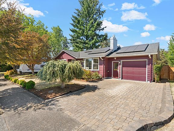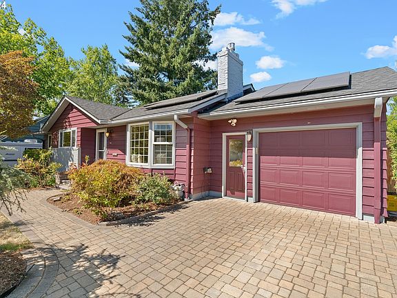This charming Hazelwood home offers a blend of comfort and modern amenities. On first glance, you will notice the front yard includes fruit trees, blueberry bushes, and strawberry plants, enhanced by new exterior paint, a new roof, and owned solar panels for energy efficiency. Inside, the hardwood floors and natural light create a warm and inviting atmosphere, complemented by a cozy gas fireplace and a large window seat.The open-concept kitchen boasts stainless steel appliances, a new oven, ample counter space, and a large island, making it perfect for cooking and entertaining. A built-in home theater system, complete with Dolby surround sound, are installed in the contiguous family room, ready for epic movie nights. The main floor is rounded out by a formal dining room, the primary bedroom with an en-suite half bath, two additional bedrooms, and an additional full bath.The finished basement expands the living space with a large carpeted family room, wood burning fireplace, sizable office, the fourth bedroom, and full bath. Outdoor living is enhanced by a covered deck, a fully-fenced, private yard with raised garden beds, a patio, a new storage shed, and a play structure.With no electric bill from May to November thanks to the solar panels and Tesla Powerwall, this home is not only beautiful but also energy-efficient. As energy rates continue to increase, you will continue to reap the benefits from this valuable feature, far into the future. Conveniently located near parks, shopping, healthcare, and public transportation, this home is a perfect blend of comfort and practicality. [Home Energy Score = 9. HES Report at https://rpt.greenbuildingregistry.com/hes/OR10190404]