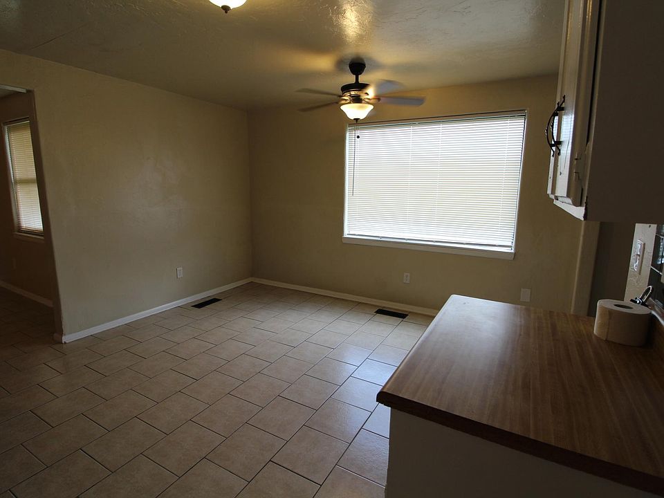 SPACIOUS!! 3 Bedroom home located just East of Post Rd. Central Heat & Air Conditioning. HUGE laundry room with lots of storage. Marbled painted floors. NO CARPET ..Stove & Dishwasher included. Security deposit is equivalent to one month rent. Application fee applies
