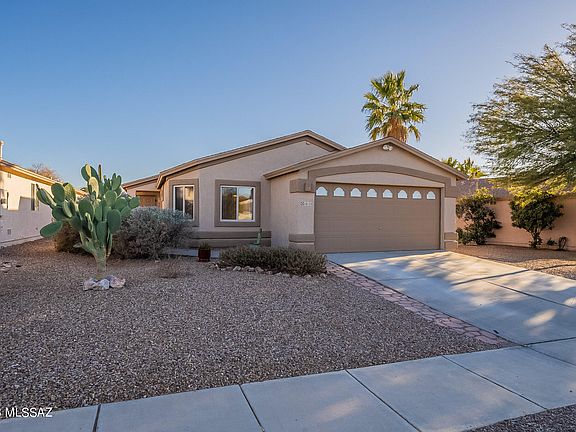 Welcome to Desert Crossings At Rita Ranch Community! This beautiful 4 bedrooms with 2 bathrooms is absolutely move in ready. The exterior has been painted recently, new interior paint, new carpet, 2 stage HVAC system with NEST control, new dishwasher & microwave, and water softener. Wait, there are more.... Laminate and Tile flooring throughout in living spaces, vaulted ceiling, owner's suite with added space, open kitchen concept facing great room that has double door to the rear covered patio. Enjoy desert landscaped rear yard with firepit for outdoor enjoyment. This is a MUST see home....come and see it today to make this home yours!