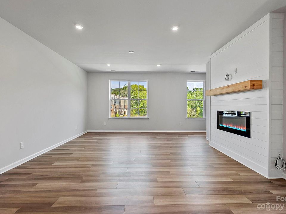 This beautifully curated three-story townhome features a 9 ft ceiling on every floor that gives a sense of extra space, a gourmet kitchen with granite countertops, stainless steel appliances with a gas stove, and custom cabinetry. The linear fireplace with shiplap design and a cedar mantle in the family room creates a cozy and inviting atmosphere, perfect for entertaining guests or enjoying a quiet night. The open floor plan design allows for a seamless flow between the kitchen, dining area, and family room, making it ideal for both intimate gatherings and larger social events. With its luxurious amenities and prime location, Gatsby's townhome community in Mint Hill, NC. This home qualifies for 5.25% FHA/VA Promotional rate!