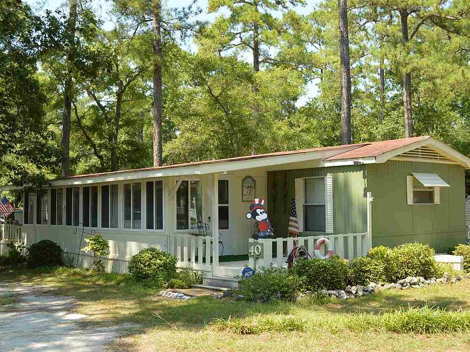 This 2BR 2BA 1986 14x71 mobile home is a golf cart ride to the ocean. This home sits in the Chapin Lakes Park in Myrtle Beach Travel Park.
