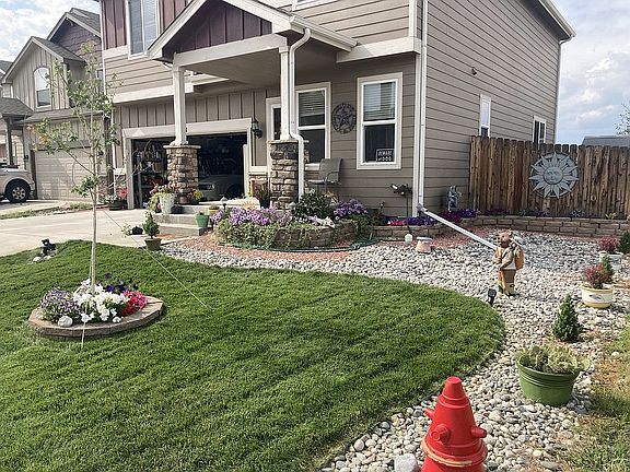 WELCOME HOME IN LORSON RANCH With easy access to military installations & centrally located between two convenient shopping centers, this property is ready for its new owner. This large lot provides ample space for those that enjoy the outdoors & want to spend their summers outdoors. The landscaping out front draws you into your new home! Open the front door into your open flex space that would be ideal for play space or dedicated office with an adjoining half bath. The living room/dining/kitchen combo is an open concept living at its finest. Walk out to your large backyard that has a massive concrete patio that expands the width of the house. A storage container, chicken coop, rain barrel, existing vegetable garden, & flower beds that line the full rear fencing are the dream for those with green thumbs that love our beautiful Colorado summers. Upstairs you will find all 3 ample sized guest bedrooms that share a full bath. A large laundry space accommodates an oversized washer & dryer with additional shelving & hanger space for those chores. The primary suite has so much space! With an attached 5 piece bath & walk in closet with added shelving for all the storage needs. Come & see this home with a farmhouse feel while still being close to schools, shopping, & bases!