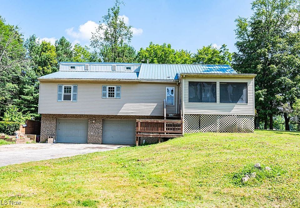 Extreme Home Makeover Opportunity – South Range Schools! Set on a gorgeous 1.14-acre lot in Green Township, this Lodge-style home offers the perfect backdrop for your vision. Overlooking the scenic High Chaparral Campground with 80+ acres of trails, wildlife, and year-round beauty, this property delivers both privacy and adventure right outside your door. Inside, the vaulted ceilings and open layout create an airy, lodge-like feel. The spacious great room flows seamlessly into the kitchen and dining areas, making it ideal for entertaining or simply relaxing in front of the fire after a day on the trails. Large windows bring the outdoors in, offering wooded views from almost every angle. The primary suite sits on one side of the home for added privacy, complete with its own bath, while the second bedroom is perfect for guests or a home office. A first-floor laundry adds convenience, and the full basement offers room for storage, hobbies, or future living space. Outside, a deck overlooking the treetops sets the scene for summer evenings, and the yard has space for a fire pit, garden, or outdoor lounge area. The attached 2-car garage and two storage sheds keep everything organized. Cash buyer responsible for well/septic inspection- Selling as-is, Bring your creativity and transform this into your own lodge-inspired retreat. #SouthRangeSchools #LodgeLiving #FixerUpperWithPotential