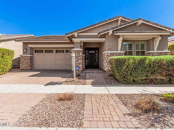Welcome to your new home in the heart of Eastmark! This beauty is on a N/S lot and boasts a spacious, open floor plan w/3 bedrooms plus a den. The gourmet kitchen is a true standout, feat. a large island/breakfast bar perfect for casual meals or entertaining. You'll love the quartz countertops, sleek tile backsplash, & abundance of white shaker cabinets, all topped off w/crown molding. beautiful stainless steel appliances, incl. a gas cooktop, double ovens, & a built in micro. Plus, the soft water & R/O systems. Step outside & you'll find your very own backyard oasis. The covered patio is wired w/speakers, a pebble-tec pool w/an oversized second step & water feature. There is also a synthetic grass area & gazebo. 10-foot ceilings, plantation shutters, & surround sound t/o. 3 car garage & storage racks and a service door adds even more convenience to this incredible home. All this and the award winning Eastmark community. More than a place to live, Eastmark is a community built on rich connections and creativity. It's also a place to evolve. Eastmark is defined by its diverse residents who work together to co-create this special place where neighbors not only know each other, but are personally and emotionally connected to each other and to our community. Living here truly is "the mark of something special." Eastmark Community Center
