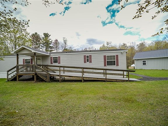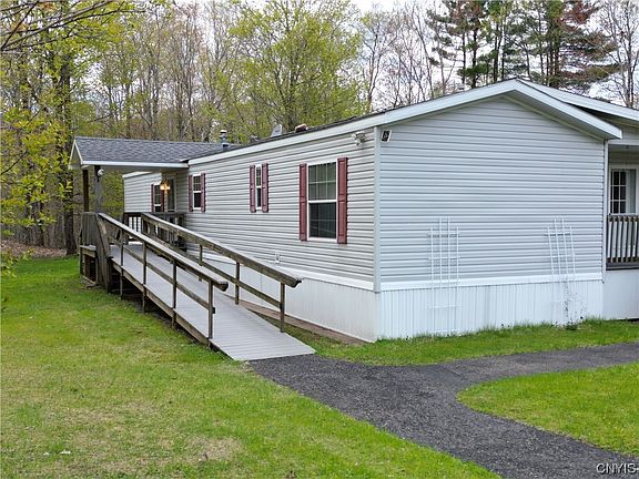 Ideally suited for those requiring a small footprint in a home, or a second, low maintenance, retreat, The 2005 Titan Home singlewide construction offers very convenient, one floor living. Situated in the lovely hills of Remsen New York, the 2 bedroom, bath and a half home sets beautifully on an ample 2.8 acres. A very large 3 season room was added immediately after the home was built, to take full advantage of the lovely seasons the area has to offer. A somewhat open floor plan separates the 2 bedrooms at each end of the home with living, kitchen and dining, fully open, creating a welcoming, light filled, space. Well thought out, detached garage, offers a multitude of uses! Certainly, ample covered parking, 2nd story, storage option and an additional room off the back presenting work room possibilities. On site, automatic home generator is a superb bonus! Well maintained, and lovely to look at, the property presents a combination of open greenspace and wooded areas. 20 minutes to the city hubs of Utica and Rome, NANO, the new hospital, Griffiss business park and big shopping. Start living the lifestyle you've promised yourself.