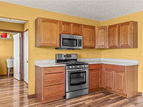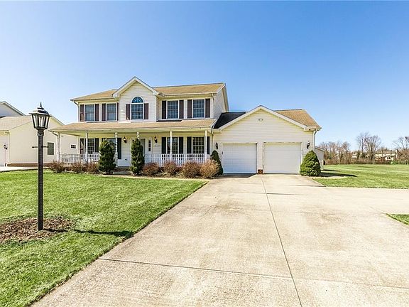 Come and tour this three-bedroom colonial on .594 acres! The bright & sunny eat in kitchen has plenty of storage and all the appliances stay! Sliding glass doors off the kitchen leads to the deck that's just waiting for summertime so you can entertain your family & friends while you cookout and enjoy the view overlooking the pond! The kitchen opens to the family room that has a gas fireplace w/stone hearth! Formal dining room! Updated half bath on the first floor & two full baths on second level are both very spacious. Master bedroom boast a walk-in closet and a Master bath with dual vanities! Finished garage with attic access, gas heater & storage cabinets! Full basement could very easily be finished as a rec room, office or workshop! Main floor has newer wood laminate flooring! Seller is providing a one-year home warranty for the new owners piece of mind! Quick and easy commute to Cleveland or Youngstown. Move in ready with immediate occupancy!