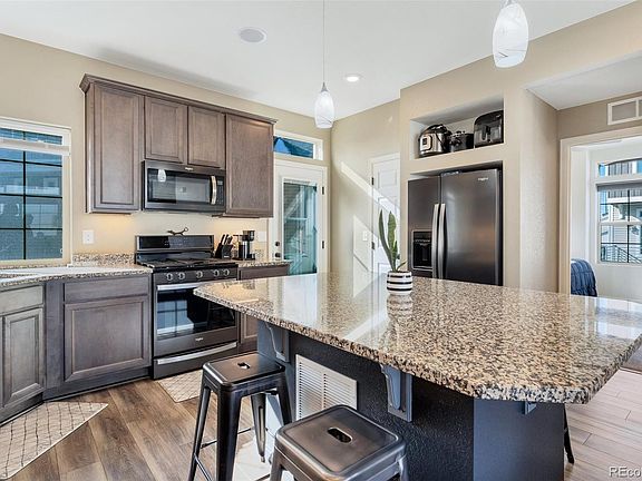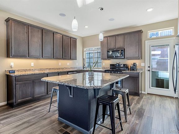 This well-located residential home, nestled in the tranquil Reunion District, offers an ideal haven for active and enthusiastic individuals. Residents will appreciate the convenient access to the Reunion Recreation Center, included with the low HOA fees. This low HOA includes a gym membership, access to an indoor basketball court, and a pool with a huge waterslide! This exquisite residence will captivate you with its radiant, open, and modernized kitchen equipped with a gas range, three roomy bedrooms, and ceiling fans adorning the interior. The young children, or the furry companions, will undoubtedly find delight in the charming, low-maintenance backyard, and the short walk to a delightful playground located across the street. Please allow me to inform you that the surround sound system throughout the home is plug in ready, and outdoor fire pit is available for your enjoyment. Additionally a hot tub is available for your relaxation. Conveniently located near the schools, grocery stores, as well as many up and coming restaurants. Quick access to Pena Blvd, the main line that takes you to Denver International Airport OR towards Denver!