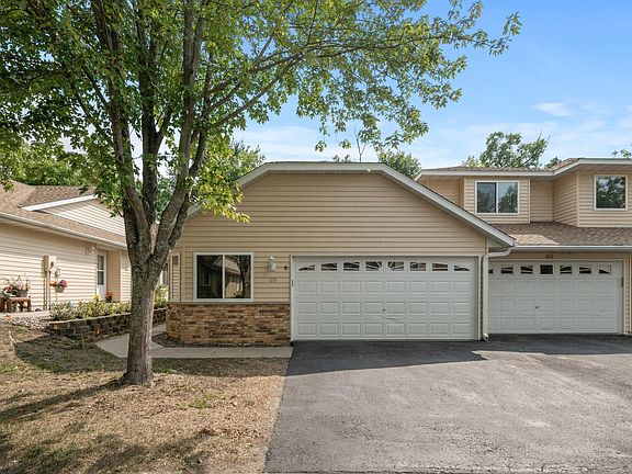 Experience joyful living in this wondeful Forest Lake 55+ townhome! All new flooring and paint throughout...a true opportunity to move in and enjoy. Step inside and enjoy the many perks of main level living and a maintenance free lifestyle. This home offers a great space for daily life and entertaining too! Large open-concept living, dining and kitchen floorplan offers plenty of prep space, storage space and room for hosting guests. The vaulted living room is extra special with a fireplace as it's focal point. The sunroom adds additional living space and includes a walk-out to your own patio. The primary suite includes large bath and walk-in closet and a second bedroom provides a great spot for guests or home office. Life's tasks are simplified with main level laundry and an attached two-car garage, not to mention exterior maintenance is a thing of the past. Come enjoy easy living in this wonderful end-unit townhome.