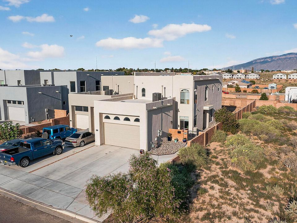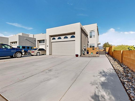 Welcome to this stunning 3-bedroom, 2.5-bathroom home that perfectly blends style and functionality. The open floor plan invites natural light creating an exceptional welcoming atmosphere. Enjoy cooking in the spacious kitchen, featuring modern stainless steel appliances and not one, but two islands, ideal for meal prep and entertaining. Experience the amazing sunrise views over the Sandia Mountains from your private deck, directly accessible from the primary bedroom. At the end of the day, unwind in the inviting ambiance of the covered patio and spacious backyard perfect for warm evenings spent with family and friends. This home offers a seamless blend of indoor comfort and outdoor beauty, making it an ideal retreat for relaxation and entertainment.