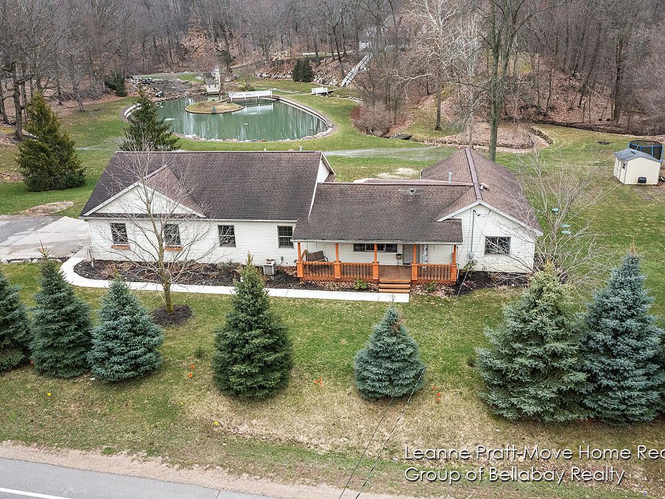 Serenity and convenience collide in this gorgeous 3 bedroom, 3 Full bathroom ranch built home that sits on 1.84 acres and has upgrades throughout home and property! Updates include new appliances in 2022, new carpet in bedrooms in 2021, new soaker tub and tile shower in hallway bathroom in 2021, new flooring in den in 2021, new septic in 2020, new pool, sidewalk, and landscaping in 2022. Well and furnace are newer too! Expansive deck on back of home overlooks spring fed pond and Sharps Creek, creating a perfect paradise. Ready to hit the town for prime shopping and eateries? Located just a few miles from M-6 and 131, you can easily jet to Grand Rapids or Tanger Outlets! Reserve your private tour today! OFFER DEADLINE of noon on 4/19.