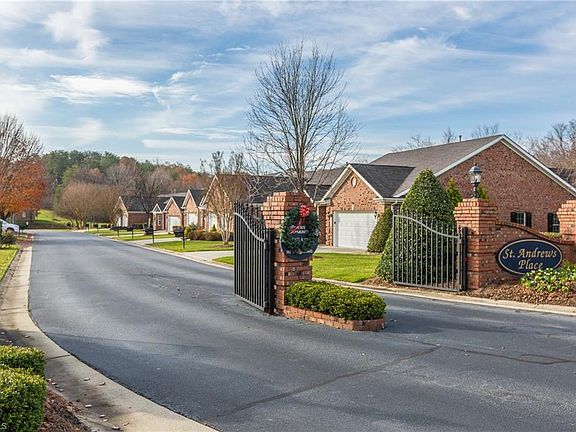 One level living at its best in the desirable St. Andrews Place development. The large open floor plan is easy to get around in and has plenty of room for your furniture. The wide entry welcomes you into the home. The functional compact kitchen is immediately on your left boasting beautiful wood cabinets, granite countertops, and a service window into the dining room. The dining room, living room, and sunroom are basically one large open space. The living room is grounded by a gas fireplace and has a large skylight overhead to flood the space with natural daylight. The guest bedroom and guest bath are located off the short hall that ends at the primary suite. The primary bedroom is very quiet, located on the rear of the house, and has a large walk-in closet and an ensuite bath.