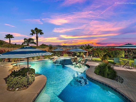 Welcome to the good life in Palm Springs! Mountain and desert views. This beautiful 4 bedroom, 3 bath home is an entertainers dream house with an open floor plan! Watch the Palm Springs Aerial Tramway from your resort style pool and backyard with outdoor dining room. You have to see yourself with friends and family gathered around the 12 foot long kitchen island with beautiful quartz countertops with waterfall ends. Glass tile backsplash and all new high efficiency stainless steel appliances. Double refrigerators and double electric self-cleaning wall ovens with convection settings. Quartz countertop wet/coffee bar and built in china cabinets. Interior LED cabinet lighting and five burner gas cook top with large stainless steel exhaust hood. Bamboo drawer inserts and with self/quiet closing doors and drawers. Beautiful views from home office with a fireplace. Master bedroom has large 12 foot slider for privacy to pool and spa. California Closet system in master. 2 large guest bedrooms for Jack and Jill entry for front bedroom. 20x20 ceramic tile flooring and bamboo hardwood flooring,LED lighting.Minutes away from downtown with world class shopping, restaurants, hiking and golf.