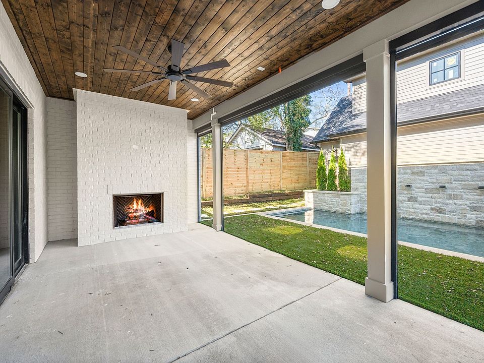 Gas fireplaceSaltwater heated poolOpen floor planTanning ledgeOverlooking the poolBuilt-in grillPrimary suite