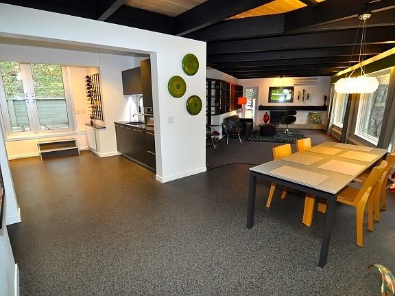 Shorewood! Completely renovated contemporary on a half + acre lot on a quiet cul-de-sac. Featured in Madison Magazine, this 3-4 bedroom features: New kitchen by EcoFusion, bathrooms (master with steam shower), recycled rubber floors, heated floors, commercial doors, rubber membrane roof with insulation, foam insulation, maintenance free deck, driveway, windows, electrical, plumbing, boiler, radiators, AC softener, washer/dryer, garage door, & MUCH more. Possible buildable lot