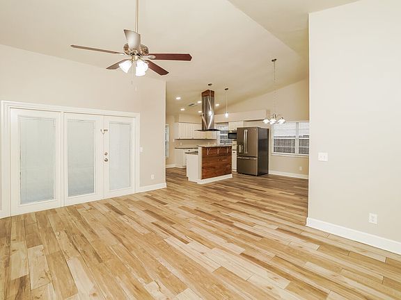 • Exterior features: 1 Story, Dual-Vanity Sinks, Eat-in Kitchen, Granite Countertops, High Ceilings, Kitchen Island, Open Floor Plan, Smart Home, Stainless Steel Appliances, Walk-In Shower