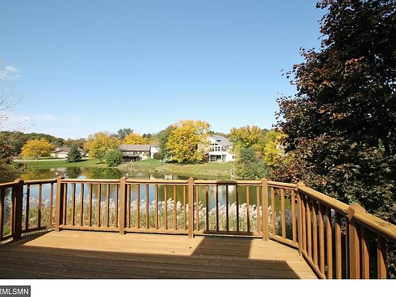 Hard to find walk out rambler in demand Hazeltine Bluff neighborhood with mature trees and overlooking pond. Walk to schools, shops and 9 acre park as well as direct access to miles of trails. Terrific eat in, vaulted kitchen has loads of cabinets and opens to large side and rear deck. Open great room with brick fireplace and room for formal dining area. 3 ample sized bedrooms on main floor. Finished lower level has huge rec room with 2nd fireplace, 4th BR and bath and shop area.