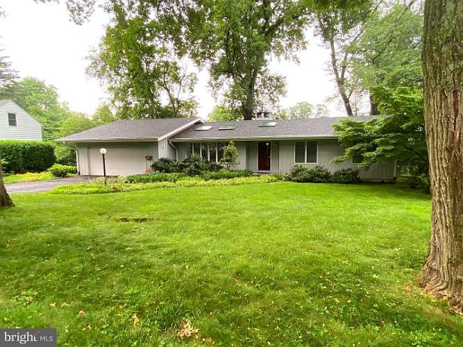 Welcome home to this lovingly maintained, ranch style home located in a great neighborhood! Follow the slate walkway and enter into the bright foyer that opens to the huge living room with a cozy fireplace and access to the screened porch. The spacious, formal dining room has plenty of natural light with large windows that over look the back yard. There are beautiful hardwood floors and skylights throughout! Just off the formal dining room is the sunny, oversized office with built in shelves, cabinets and double doors. The eat in kitchen features plenty of cabinets , built in desk, stone backsplash, Corian countertops and sliding glass doors to the huge deck, perfect for entertaining! The laundry room is just off the kitchen and features additional storage. There is a large primary bedroom with a private full bath, 2 additional bedrooms and a hallway full bath that complete the main floor. There is an oversized 2 car attached garage, plenty of driveway parking, fenced yard, gutter guards and unfinished basement with french drain. Enjoy easy access to the Delaware Canal for walking, biking and fishing. Convenient commuting to Princeton, Philadelphia and New York. Make this your new home!