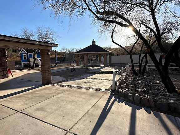 Ranch style property , features a long driveway with a gazebo , there is room for playgrounds , grill and gatherings , the wide space offers endless possibilities! three bedroom 2 bath electric fireplace , cover front patio, a lot of mesquite trees, converted garage. ac, all-electric home