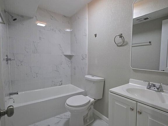 Granite countertopsBrand-new carpetSleek modern kitchenStainless steel appliancesStackable washer and dryerVinyl flooringNew cabinets